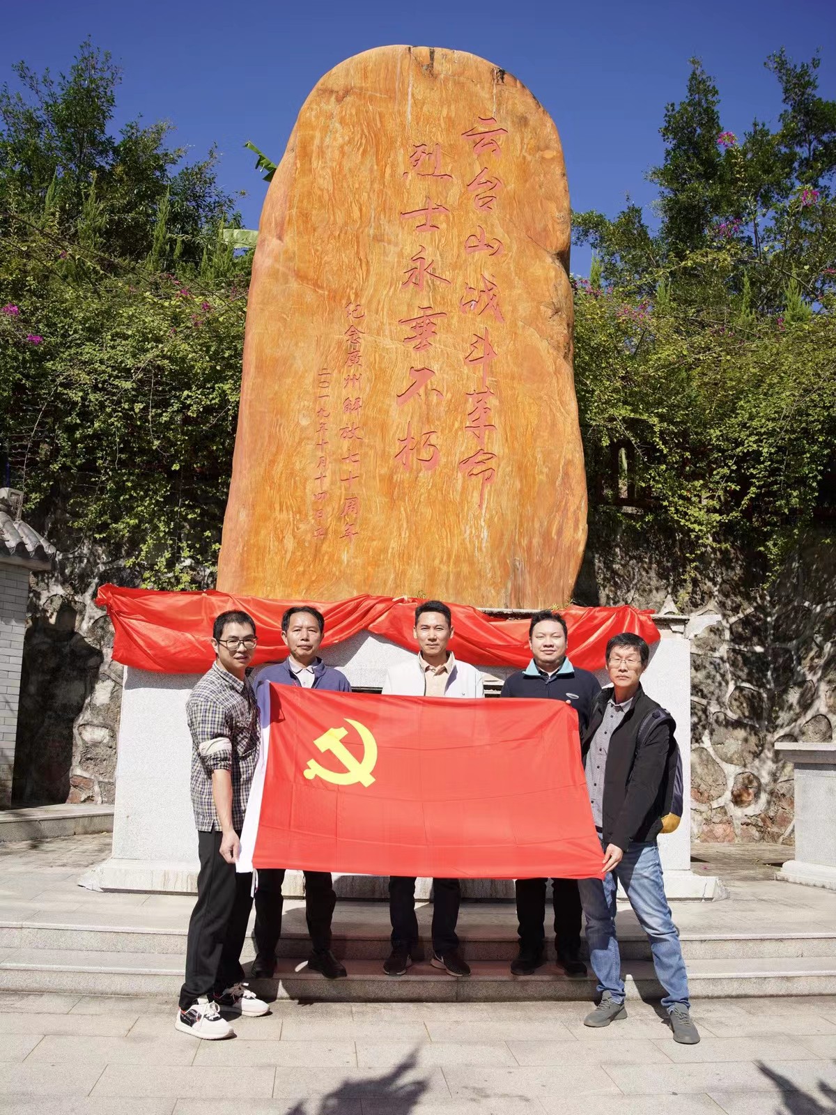 上午资产装备处党支部党员们参观了从化宣星村,2009年宣星村获得了全国首个“中国红色旅游文化村”称号,并建立了广州市爱国主义教育基地。下午探访了云台山革命战场遗址、革命烈士纪念碑,观看学习了云台山革命烈士的英雄事迹,深入了解到云台山战役是广州解放的最后一场重要战役。大家纷纷感慨中国革命的艰辛历程和我们幸福生活的来之不易,我们作为高校教职工党员,应当传承好红色基因,以实际行动发挥党员先锋模范作用。