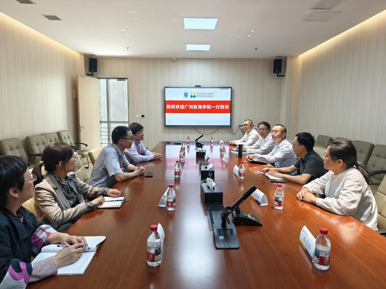 座谈会上,双方围绕实验室安全管理体系、设备全生命周期管理、实验内容开展、实验室建设和超长国债申请等方面的具体问题展开了具体的探讨。吴贤铭智能工程学院详细介绍了学院建设进展,重点分享了实验室建设与管理、设备配置标准、开放共享机制及超长期国债项目申报经验。该院依托智能制造、机器人、工业互联网等前沿领域实验室集群,构建了“基础研究-技术攻关-产业应用”全链条科研生态,并通过校企联合实验室、国际科研合作项目等载体,推动创新成果转化与人才培养深度融合。童军杰对吴贤铭智能工程学院的热情接待表示感谢,表示此次调研旨在学习吴贤铭智能工程学院在实验室高效管理、大型仪器设备共享及跨学科实验平台建设等方面的先进经验,为广航优化实验室资源配置、提升实践教学与科研支撑能力提供参考。