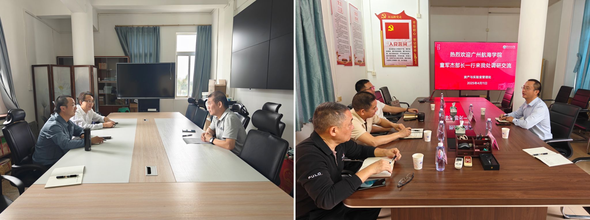 为提升学校实验室建设与管理水平,学习先进经验,近日,实验室与资产装备部(以下简称资产部)部长童军杰带队赴广东海洋大学、岭南师范学院开展专题调研交流。广东海洋大学资产设备管理部部长杨原志、岭南师范学院资产与实验室管理处处长李伟热情接待并陪同调研。